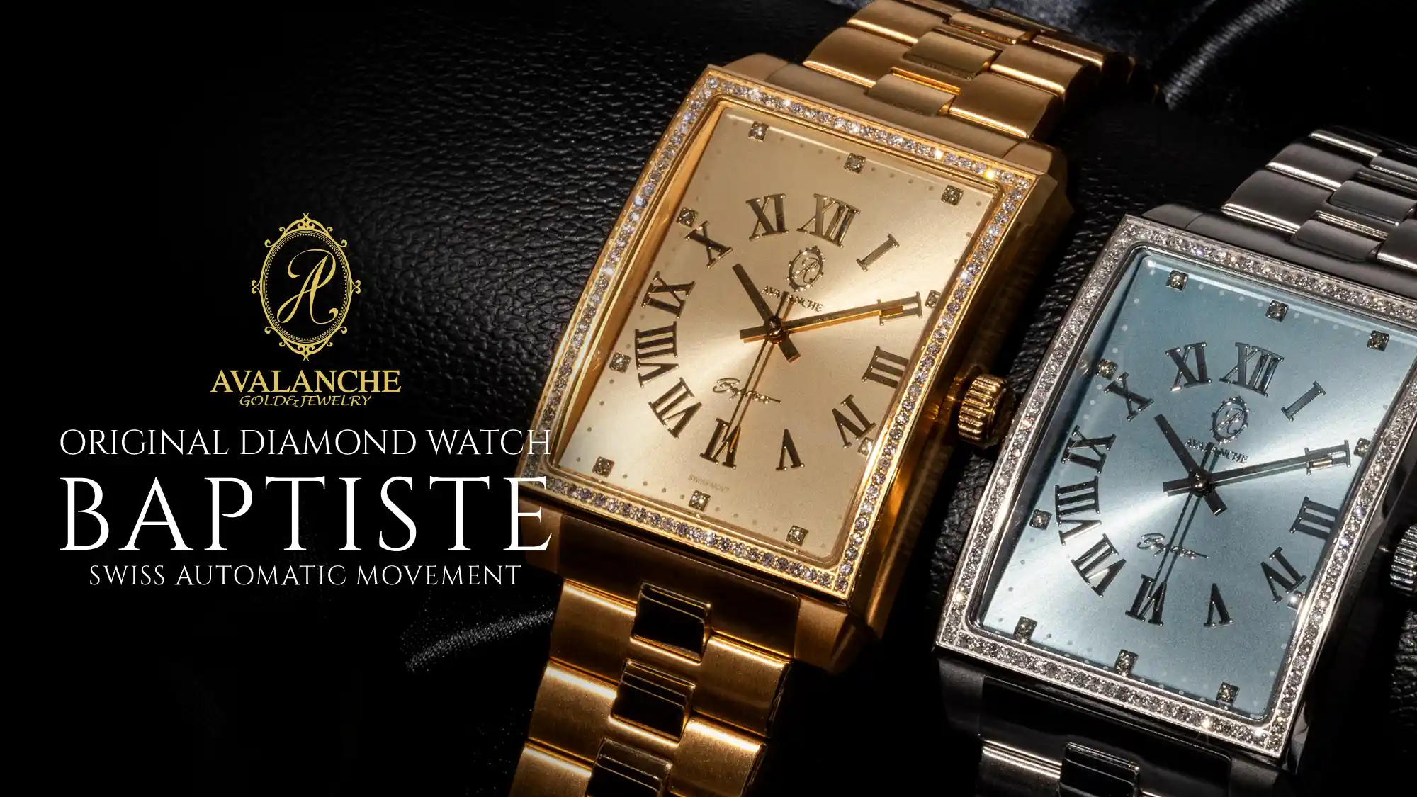 アヴァランチオリジナルウォッチ第二弾”Baptiste (バティスト)”。一見するとシンプルなスクエア型のフェイスですが、サイドから見と時にカーブしたデザインにすることで腕へのフィット感が増し、一味違ったスクエア型になりるように設計しました。