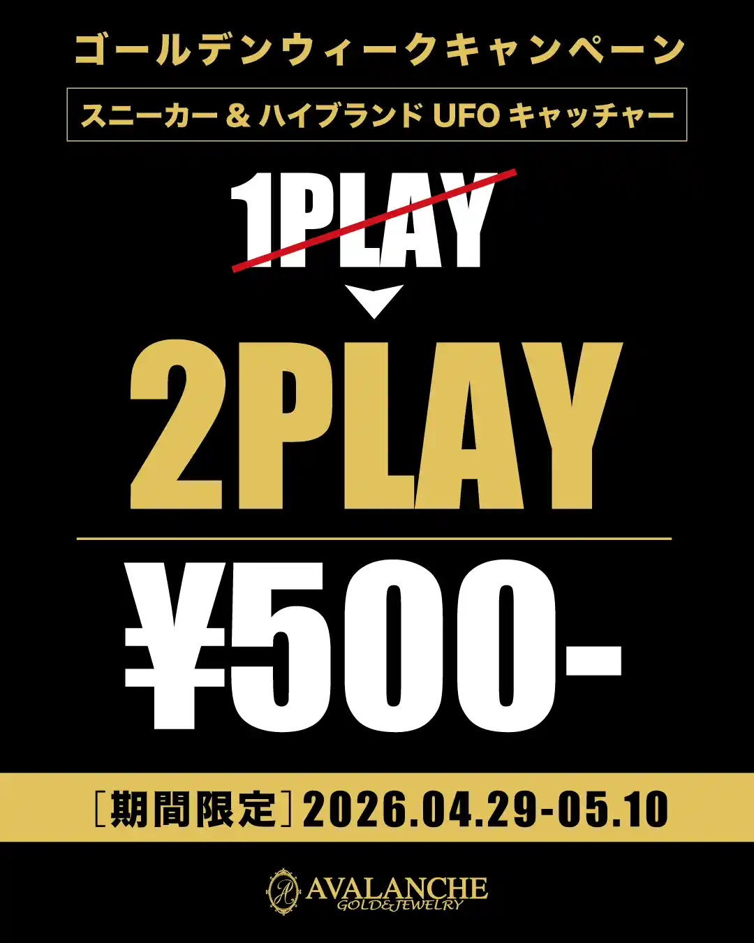 ゴールデンウィーク期間限定 スニーカーUFOキャッチャー2PLAY ¥500-By ava045 / 横浜本店を除く全ての店舗に設置しております。 ※町田東急ツインズ店、なんばパークス店は対象外となります。 SHOP LIST